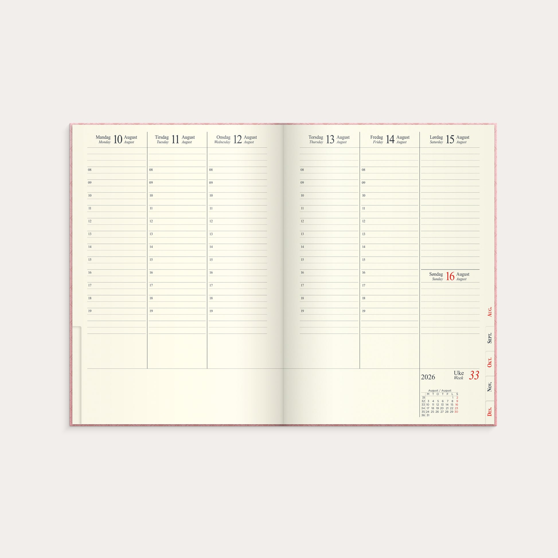 Kalender 2026 Sjef A5 rosa