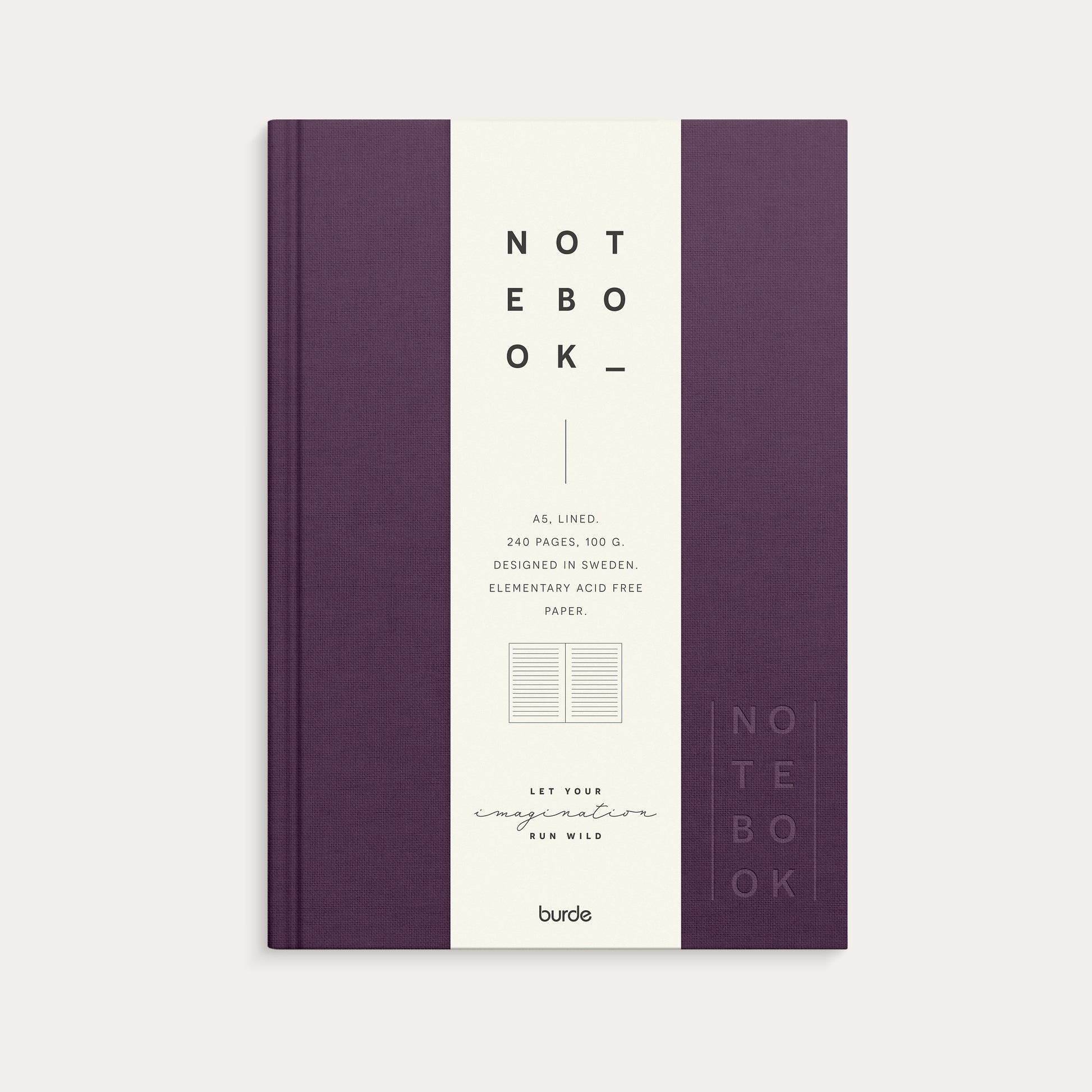 Notebook with linen textile cover. Our beautifully designed notebooks are created in Sweden with a focus on both style and function. This cover, in a deep and elegant plum color, gives a sophisticated and warm character. The A5 notebook contains 240 cream-colored lined pages, perfect for daily notes, reflections, or creative writing.