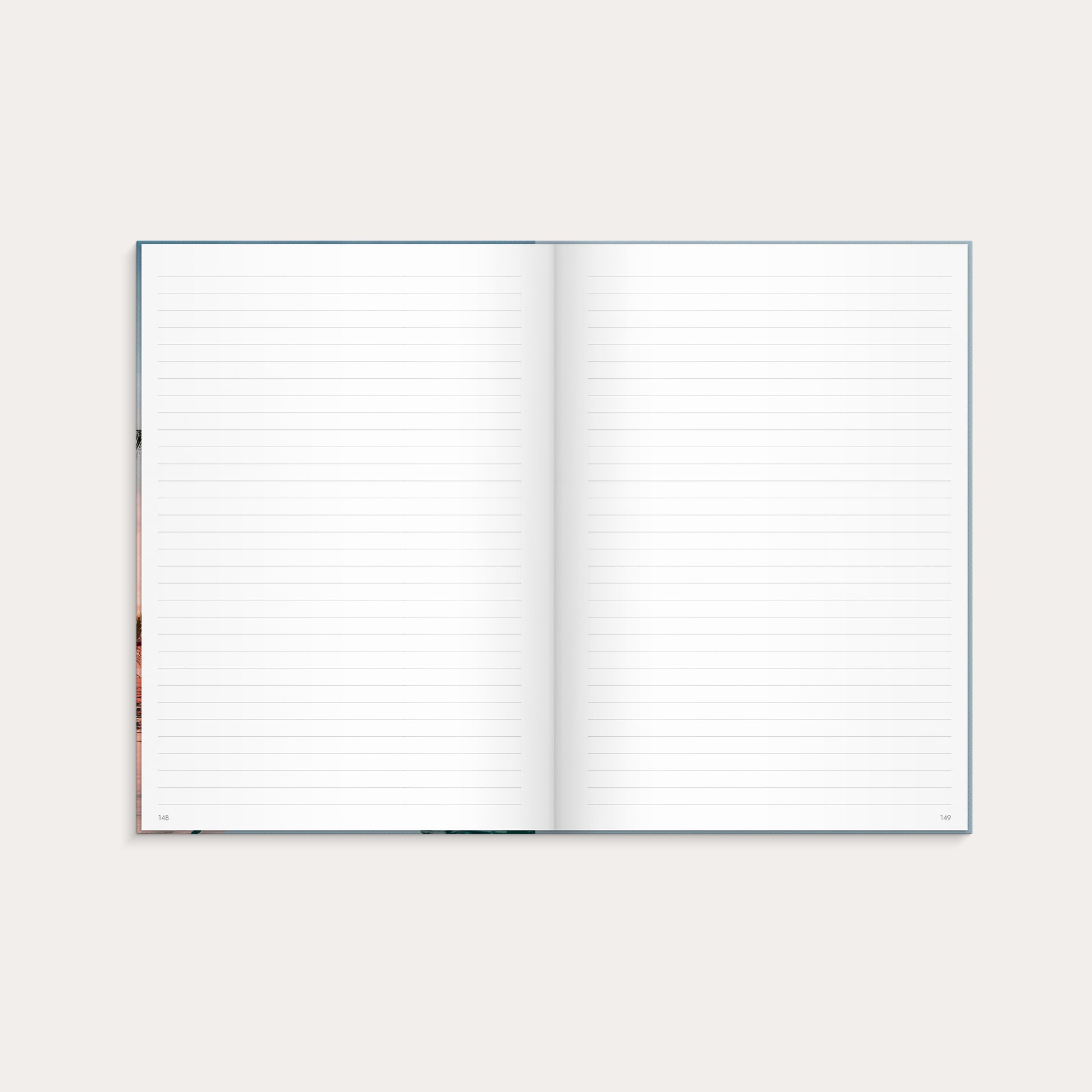 Exclusive hardcover notebook with unique themes expressed through quotes and inspirational images. Comes with an elastic band and two ribbon markers.