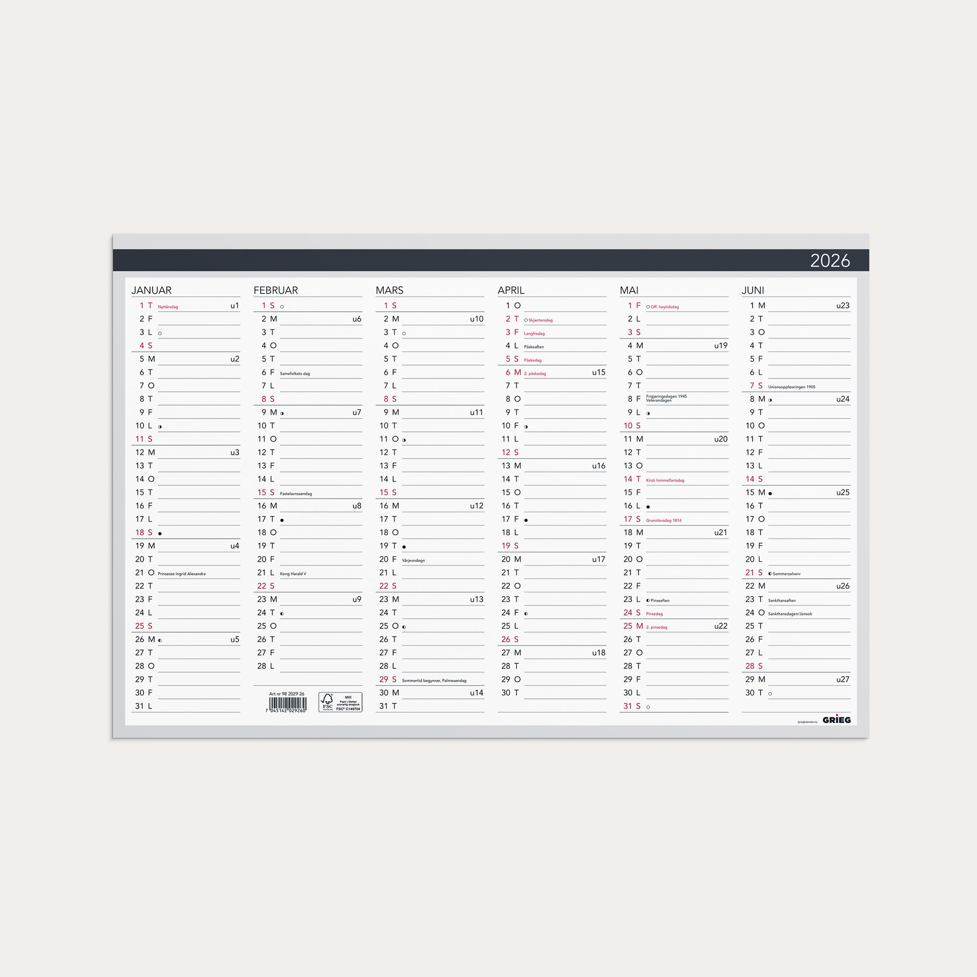 Platekalender 2026 Elegant