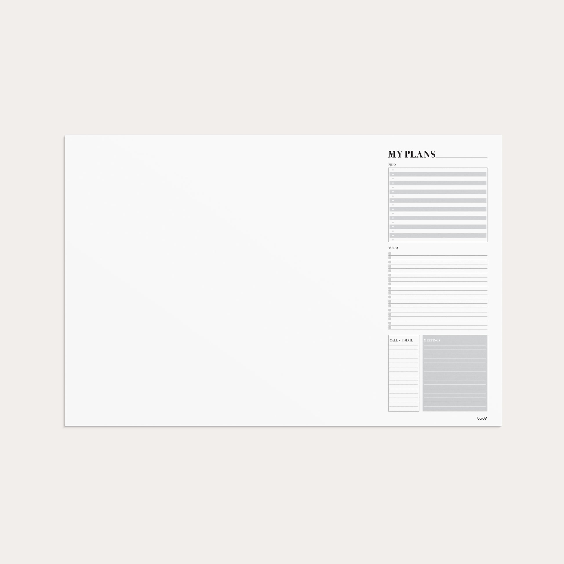 Desk pad with space for your own notes. Pad of 20 sheets. Glued at the bottom. FSC®. Dimensions: 600x400 mm.