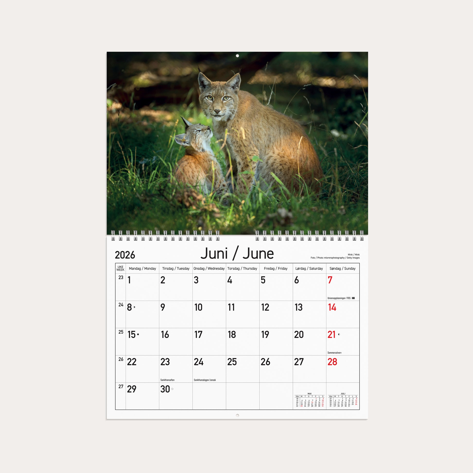 Veggkalender 2026 Norske Dyr