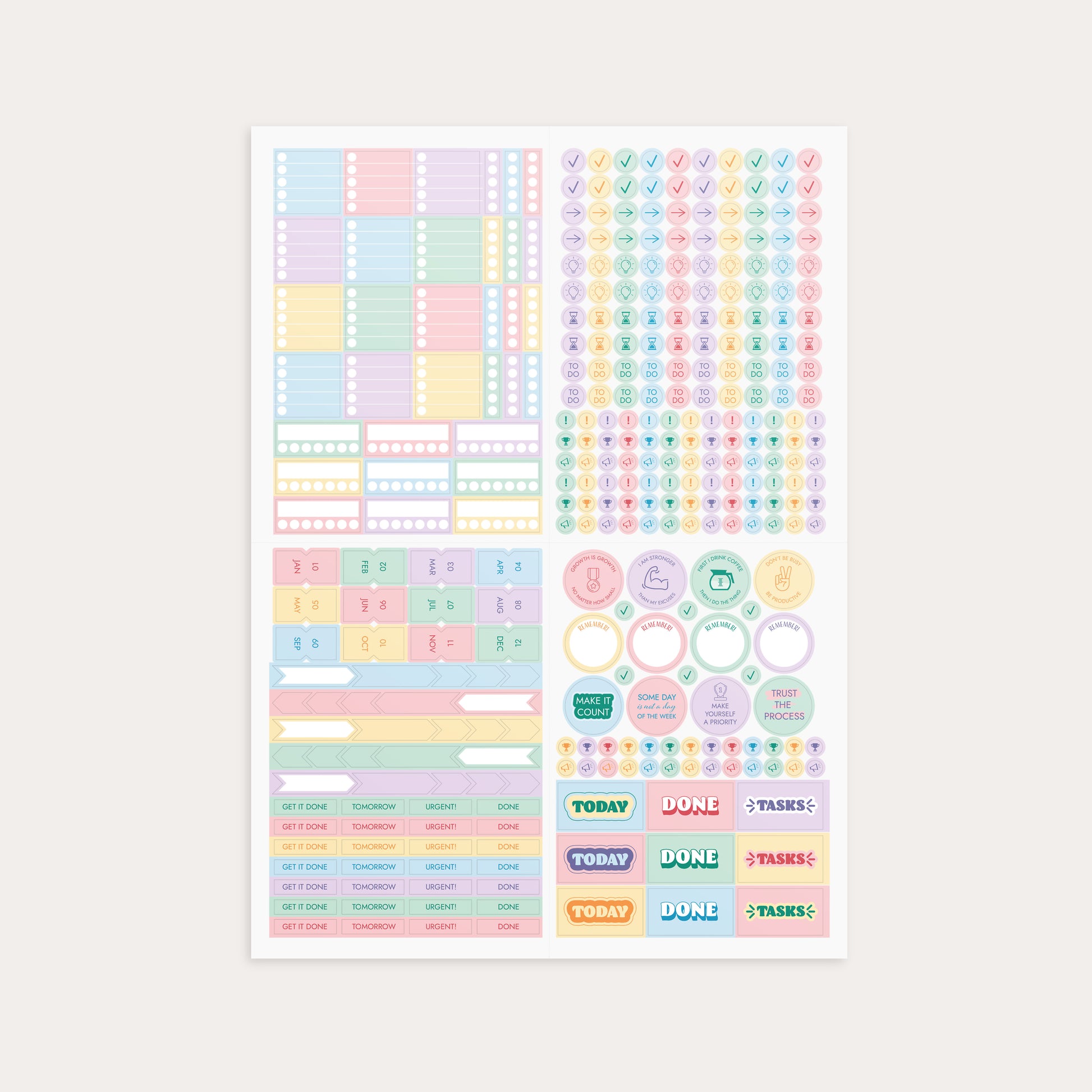 Produktivitetsklistremerker - perfekt hjelp til å huske på alt du skal gjøre! Finnes også i en variant med litt mørkere farger.