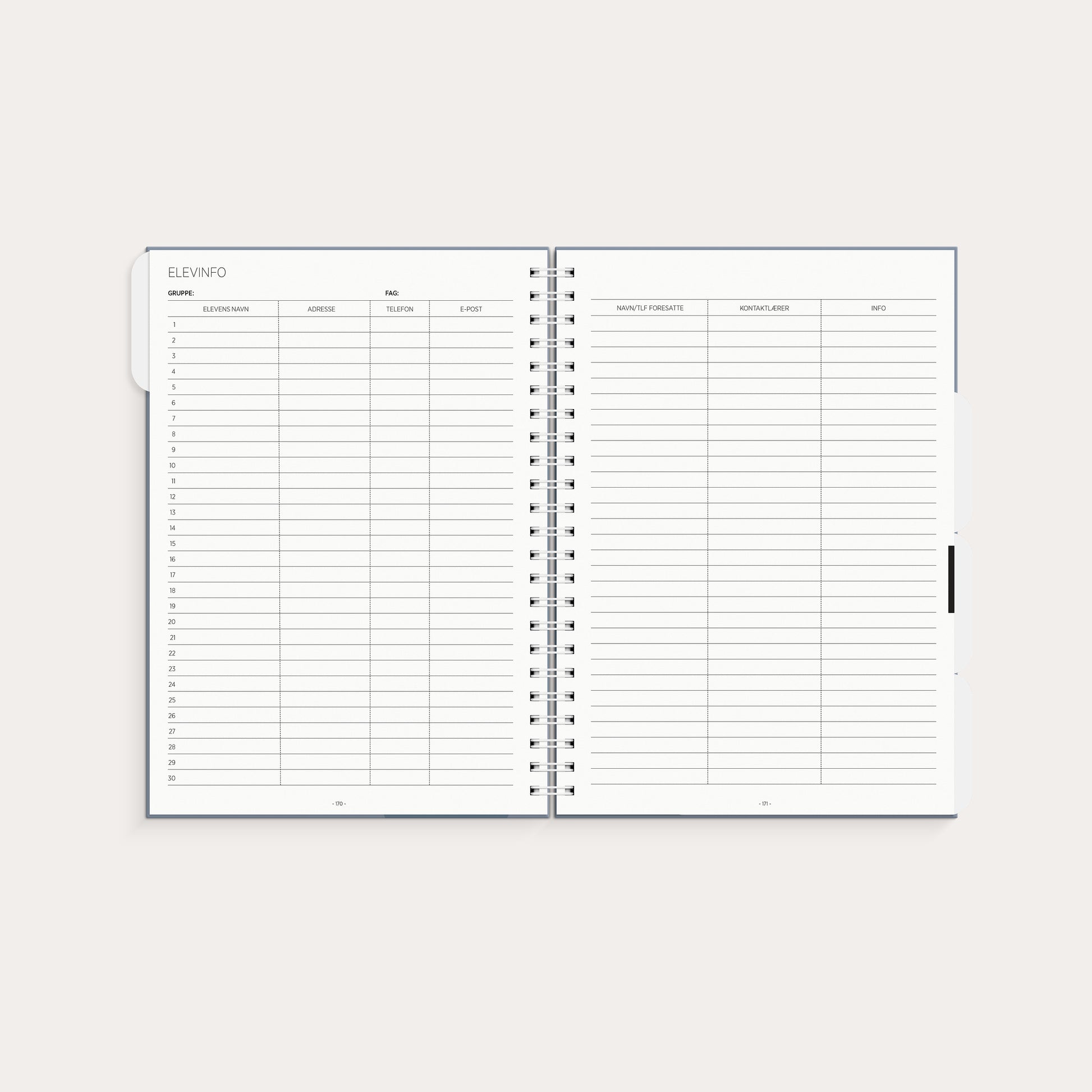 Denne kalenderen er det ultimate verktøyet for lærere og er stappfull med praktiske sider og planer. Her finnes alt du trenger for å ha full oversikt. Kalenderen har 4 flyttbare skillekort i plast - det ene med påtrykket linjal og 2 praktiske papirlommer til oppbevaring av dine løse ark.