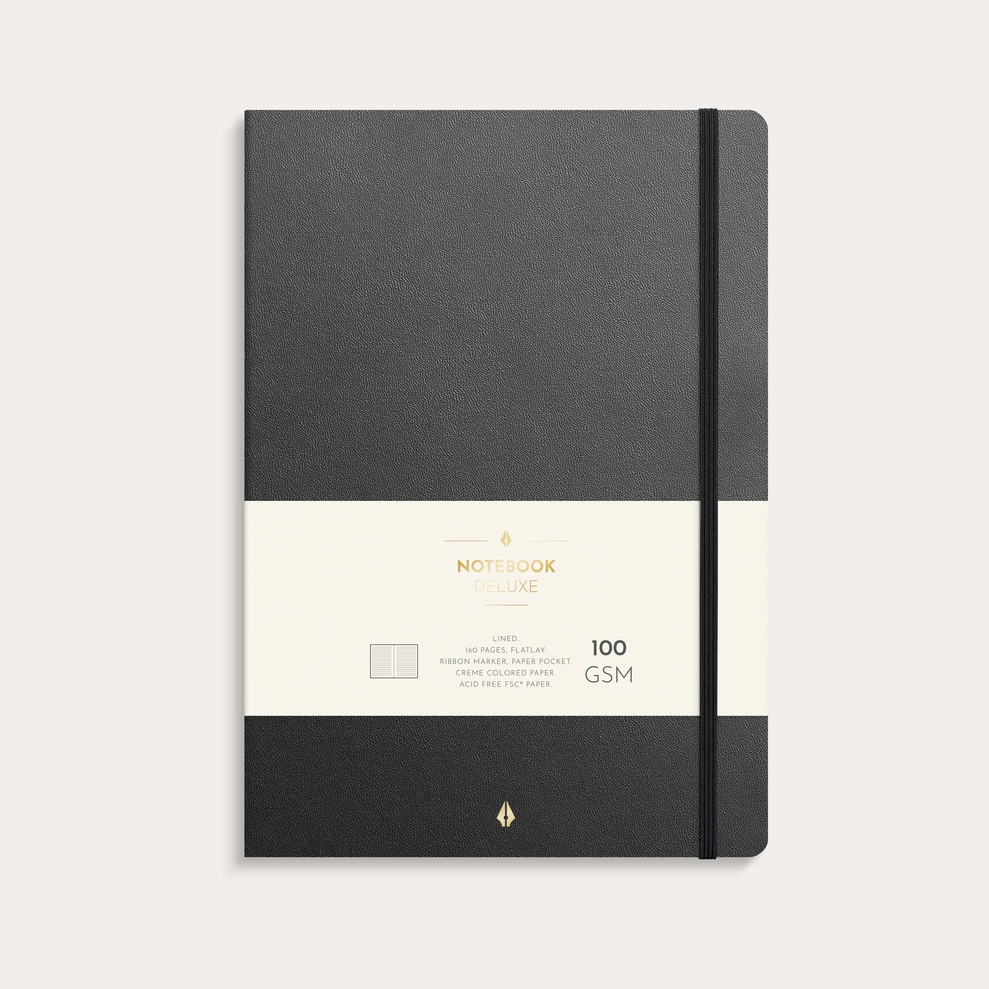 Unn deg en eksklusiv notatbok for alle dine beste tanker og idéer. Disse notatbøkene er innbundet og har et mykt omslag i kunstskinn, samt strikk og bokmerke. Bakerst finnes også en lomme for løse notater og småting. Inni finner du 160 linjerte sider på herlig kremfarget papir av tykkere kvalitet.