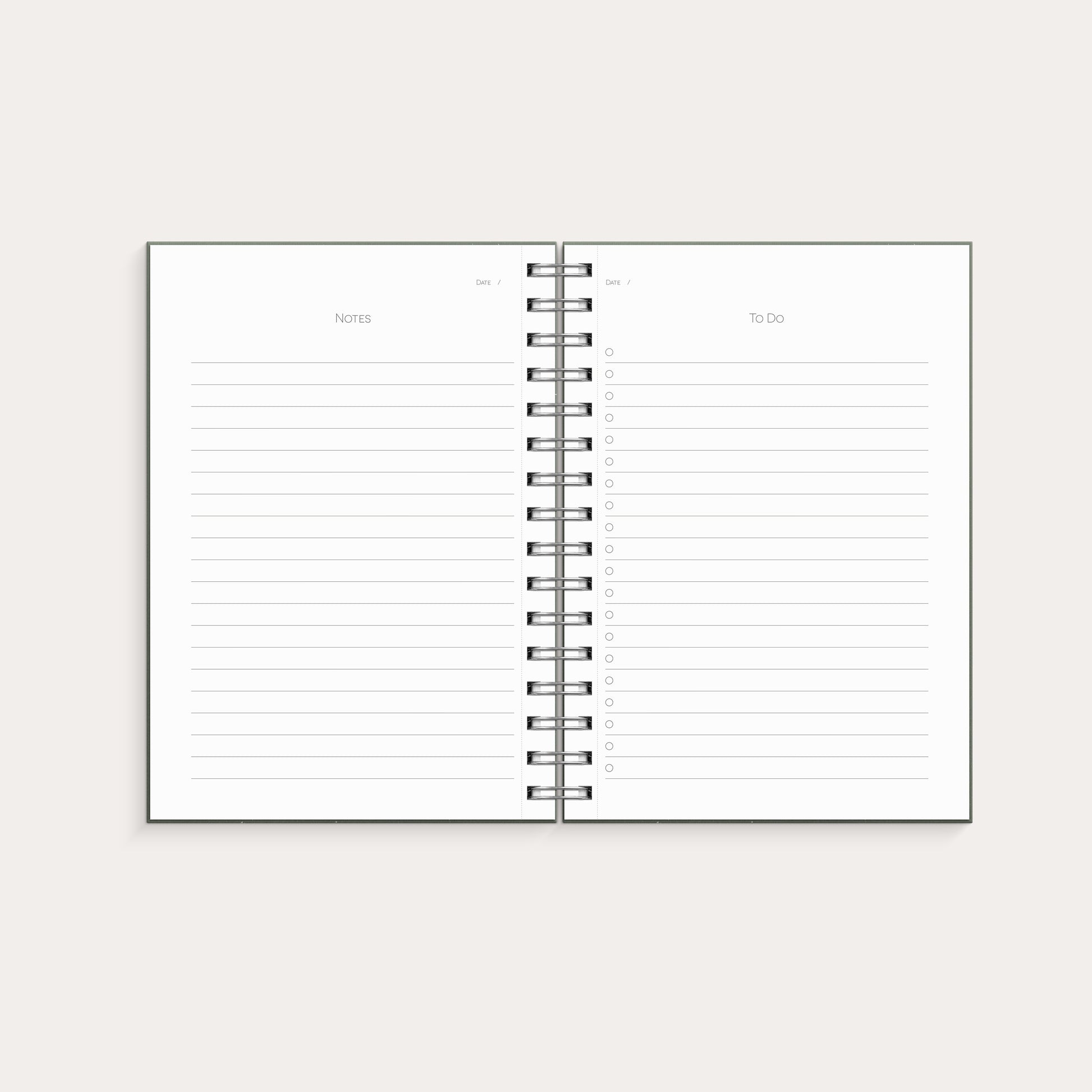 Denne spiraliserte notatboken kombinerer gjøremålsliste og linjerte sider – perfekt for å strukturere oppgaver og idéer. Det stilrene omslaget i mosegrønn kartong gir et både elegant og funksjonelt uttrykk. Med sine 300 linjerte sider får du rikelig med plass til notater, lister og alle dine kreative tanker.