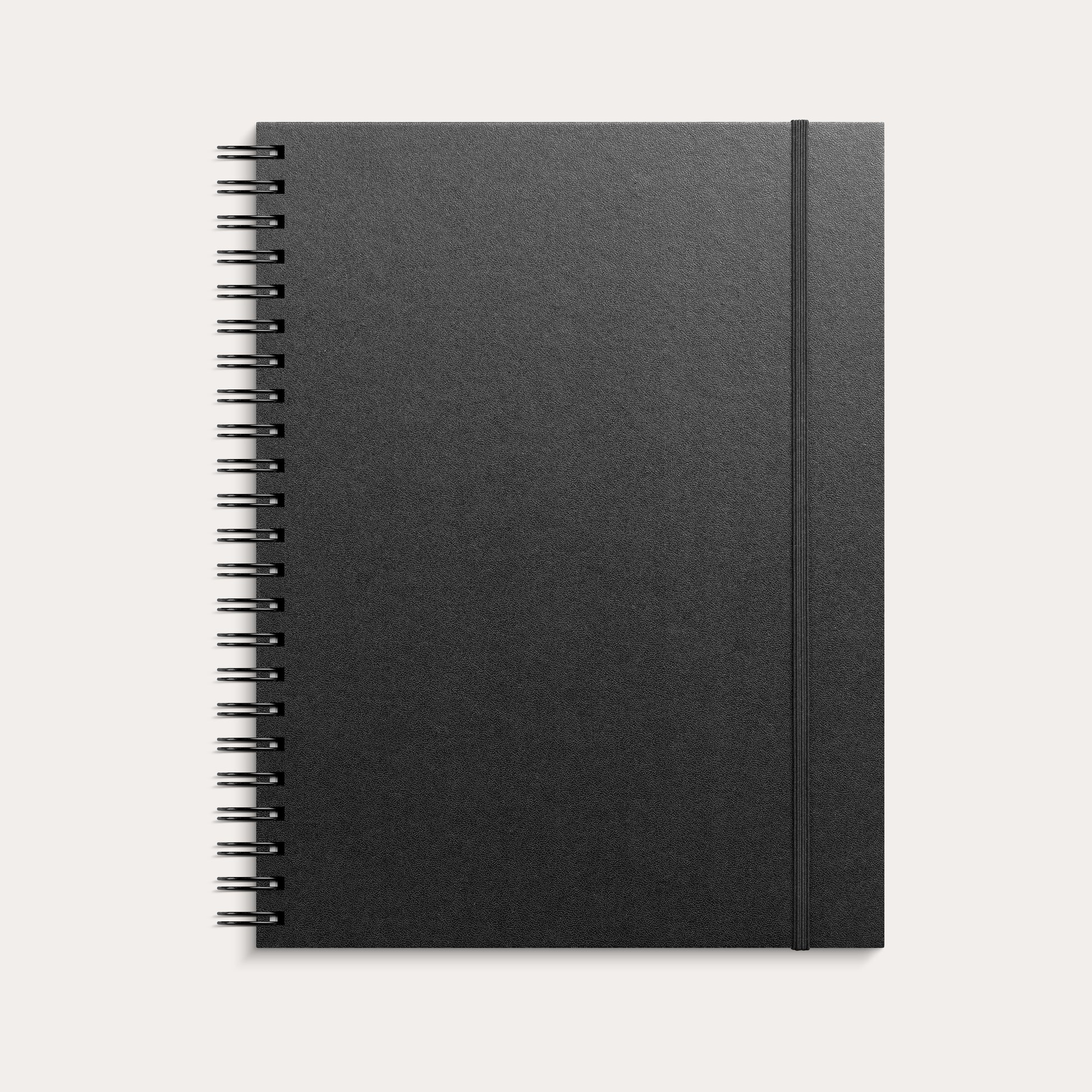 Skisse- og tegnebok med kunstskinn hardcover. Spiralisert rygg. Strikk for lukking. Perforert rivekant på arkene. 150 g kremfarget syrefritt papir, 50 blad (100 sider). Format: A4 (210x297 mm).